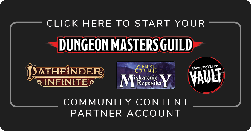 ダンジョンマスターズギルド、パスファインダー・インフィニット、ミスカトニック・レポジトリなど向けのコンテンツ制作をお探しですか? コミュニティコンテンツのタイトルを作成する場合は、このオプションを選択してください。 出版パートナーアカウントは不要です。お客様ご自身のアカウントから直接公開できます。