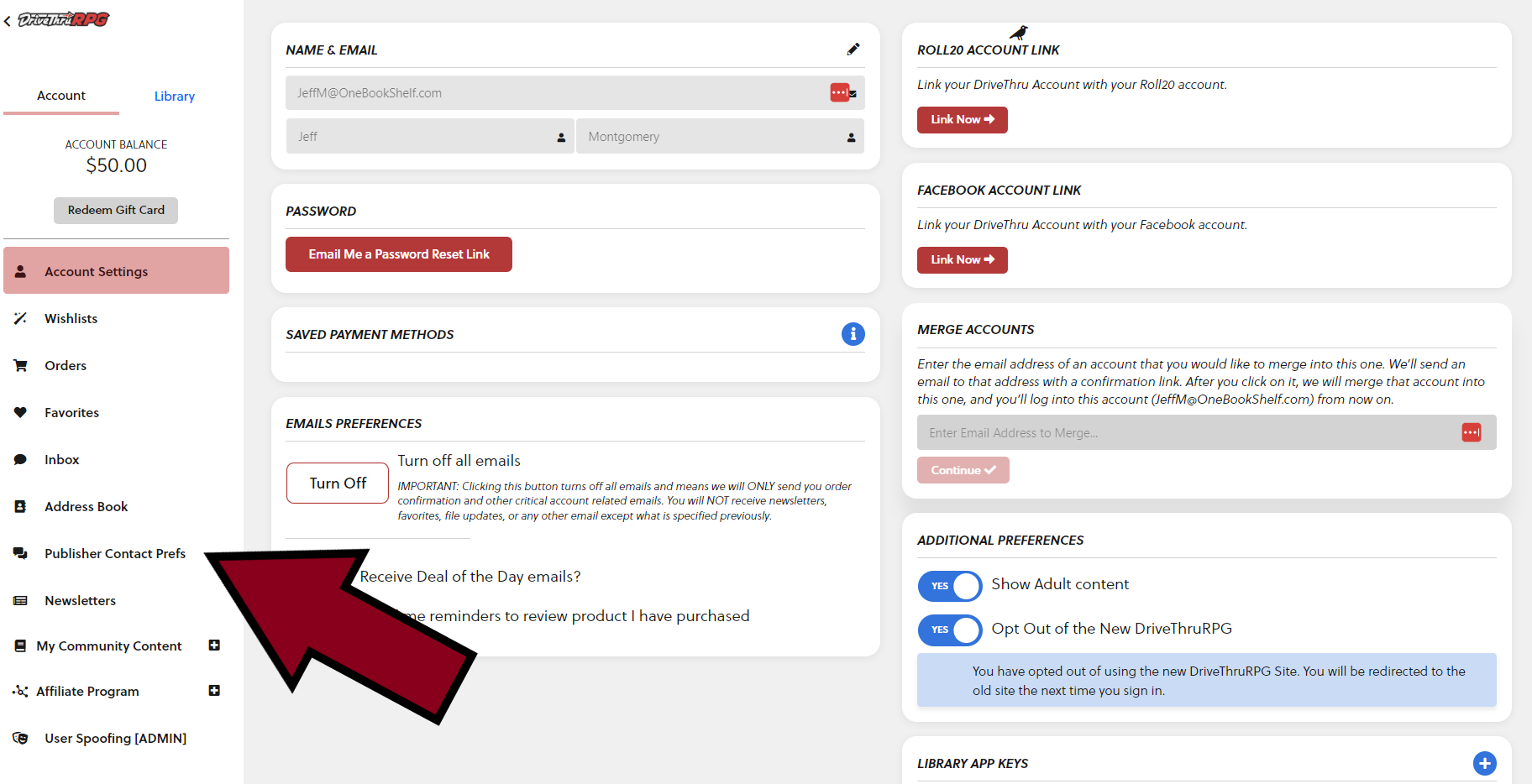 여기에서 개별 퍼블리셔가 내게 연락할 수 있는 방법을 설정할 수 있습니다. 위의 1~3단계를 수행한 후 왼쪽 열에서 게시자 연락처 기본 설정을 클릭하여 기본 설정을 변경하세요.